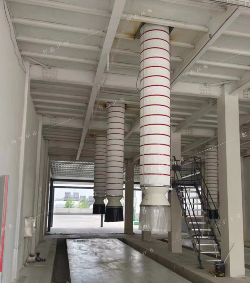 伸縮溜管采用雙層套管結構,由溜筒和防塵罩構成。溜筒內通過物料,防塵罩外套在溜筒上,期間行程吸塵腔。無塵伸縮溜管底部將設料位傳感器和防塵群罩。料位傳感器將設在外側或內側,防塵群罩將采用分塊重疊式。在裝車過程中料位傳感器接觸物料后,無塵伸縮溜管將及時提升使料頂與堆積的物料始終保持一定距離。防塵群罩能罩在料堆上,以保證吸塵效果,防止粉塵外溢。溜筒將采用附有聚氨酯耐磨襯板的鋼板制成,防塵罩采用防靜電柔軟強度大的化纖材料制成。防塵罩內將設置支承骨架,既可上下伸縮,又可保證氣流通暢。伸縮溜管升降自如,無阻滯現(xiàn)象;在伸縮溜管底部將至少設3個吊點,以保證升降機構帶動伸縮溜管平穩(wěn)升降。